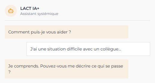 L'approche LACT entreprise a révélé un mécanisme circulaire : plus le directeur recadrait publiquement, plus le collaborateur se justifiait, alimentant davantage les tensions. Entre les séances avec l'intervenant, chaque protagoniste a utilisé LACT IA+ pour analyser ses propres réactions et comprendre les dynamiques relationnelles.